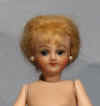 ![]() ![]() Sold--Shown is a 5-1/4" all-bisque Periwinkle. This precious doll has jointed elbows! She has tiny blue glass eyes and a blonde mohair wig with a braid down the back. She is wearing small silk socks and pink leather shoes. $145 undressed